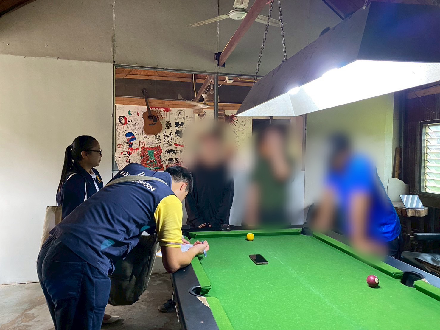 จากการตรวจสอบพบกลุ่มวัยรุ่นแต่งกายชุดนักเรียน ชุดนักศึกษาวิชาทหาร และชุดลำลองเข้าไปใช้บริการอาหารและเครื่องดื่มทั้งน้ำอัดลม และน้ำต้มใบกระท่อมปรุงภายในร้านดังกล่าว จำนวน 19 คน อายุตั้งแต่ 15 ปี ถึง 19 ปี สอบถามประชาชนที่อาศัยอยู่บริเวณใกล้เคียงได้ความว่าร้านดังกล่าวเป็นสถานที่ที่มักจะเป็นจุดนัดหมายของกลุ่มนักเรียน/นักศึกษาทั้งผู้ชายและผู้หญิงในพื้นที่อำเภอเมืองเชียงรายทั้งในเวลากลางวันที่ต้องหนีเรียนมาและเวลาเย็นหลังเลิกเรียนจนกระทั่งถึงตอนดึกยามวิกาลซึ่งส่วนใหญ่เด็กและวัยรุ่นเหล่านี้จะเข้าไปนั่งดื่มน้ำต้มใบกระท่อม เล่นสนุกเกอร์ และเล่นเกมในโทรศัพท์โดยมีการพูดคุยกันเสียงดังตลอดเวลา สร้างความเดือดร้อนให้กับประชาชนที่อาศัยอยู่บริเวณใกล้เคียง