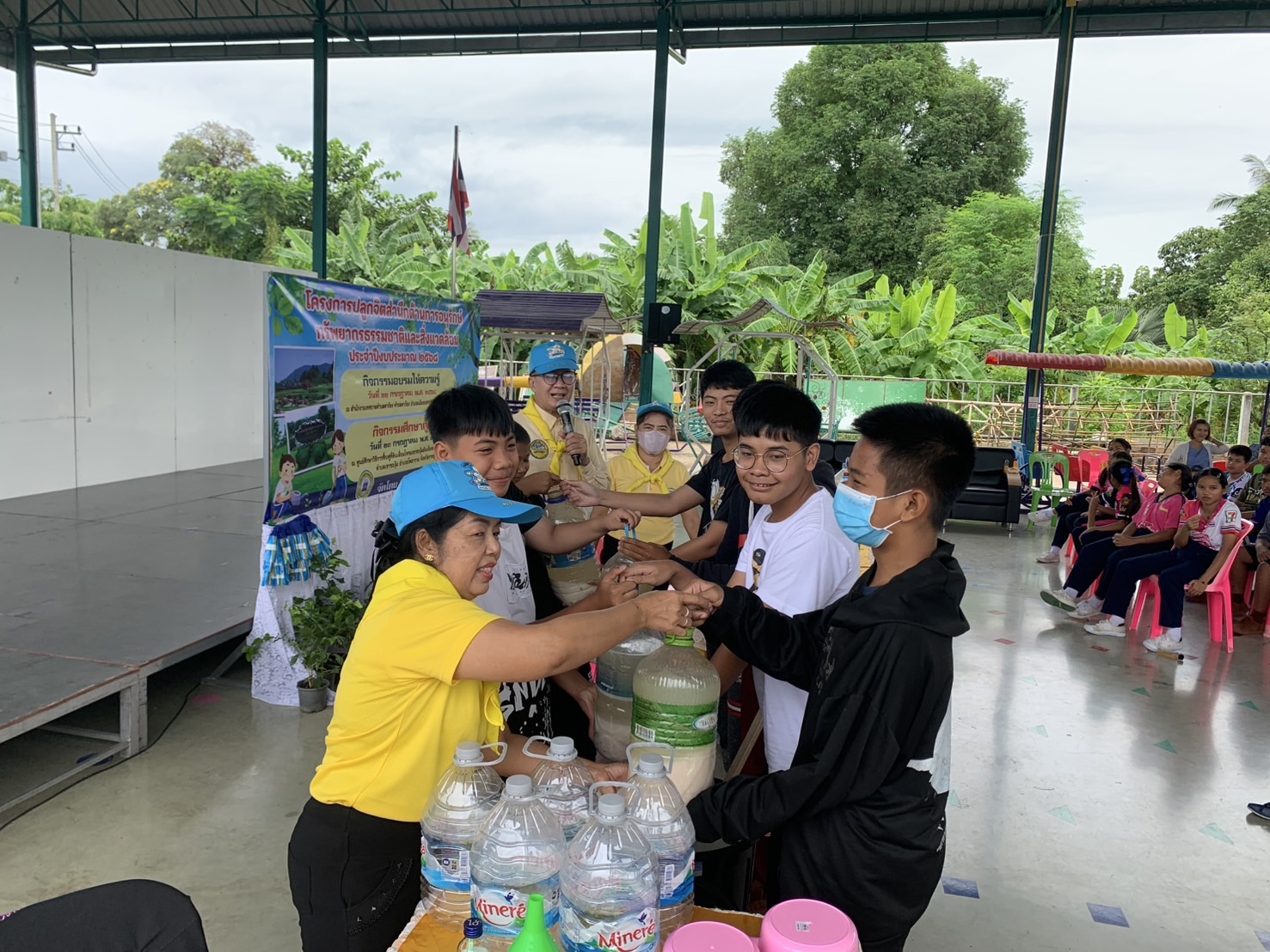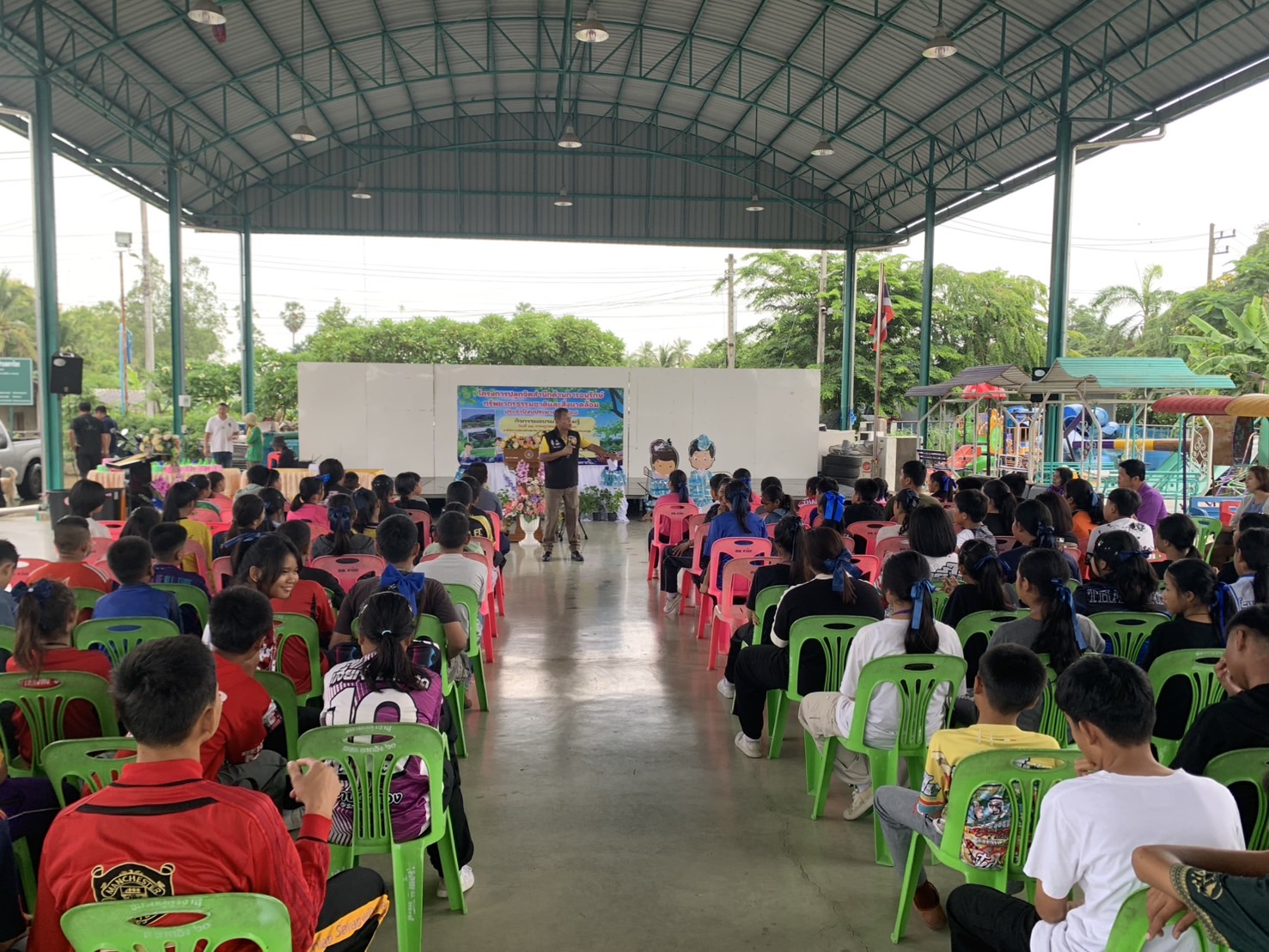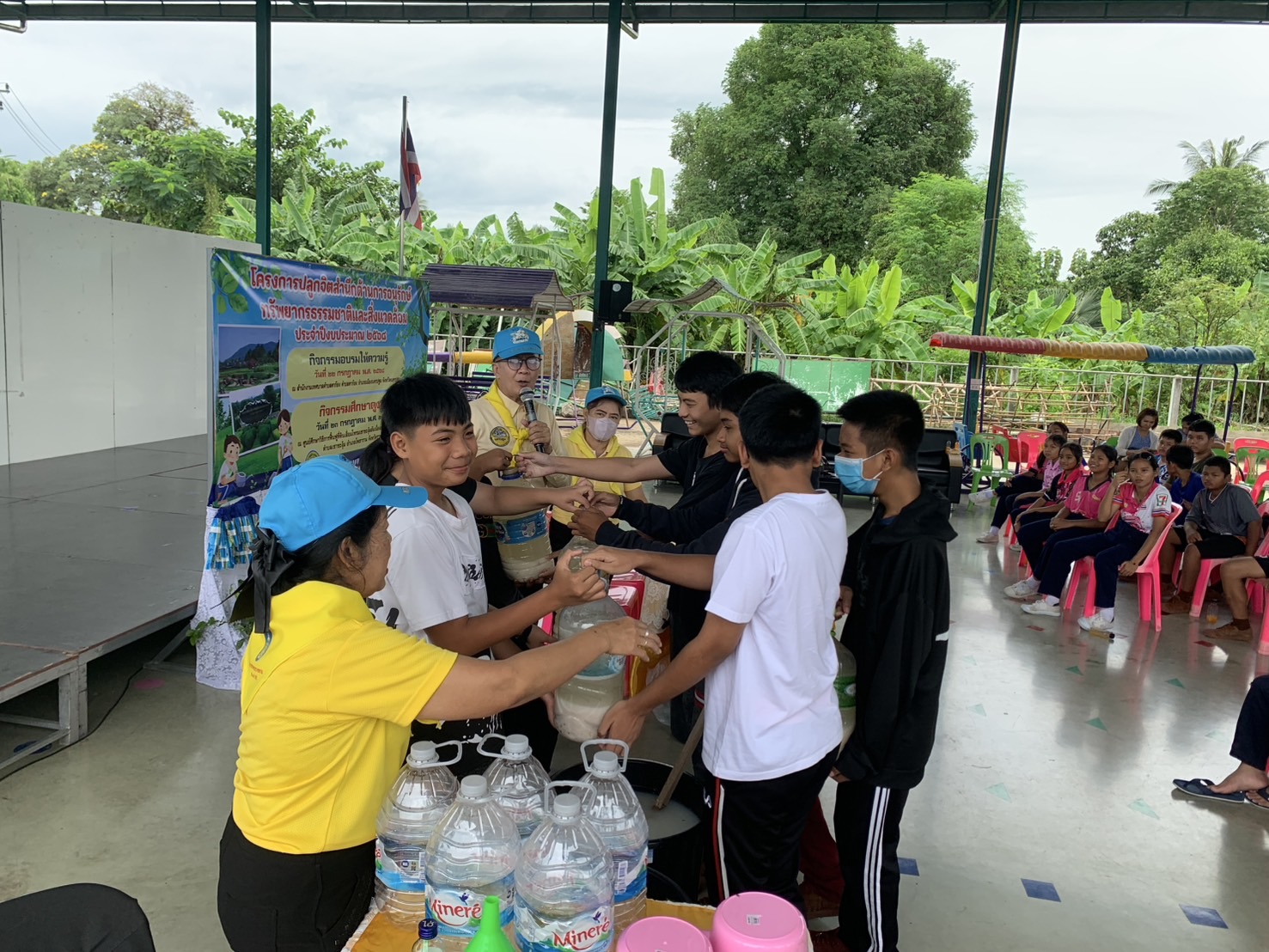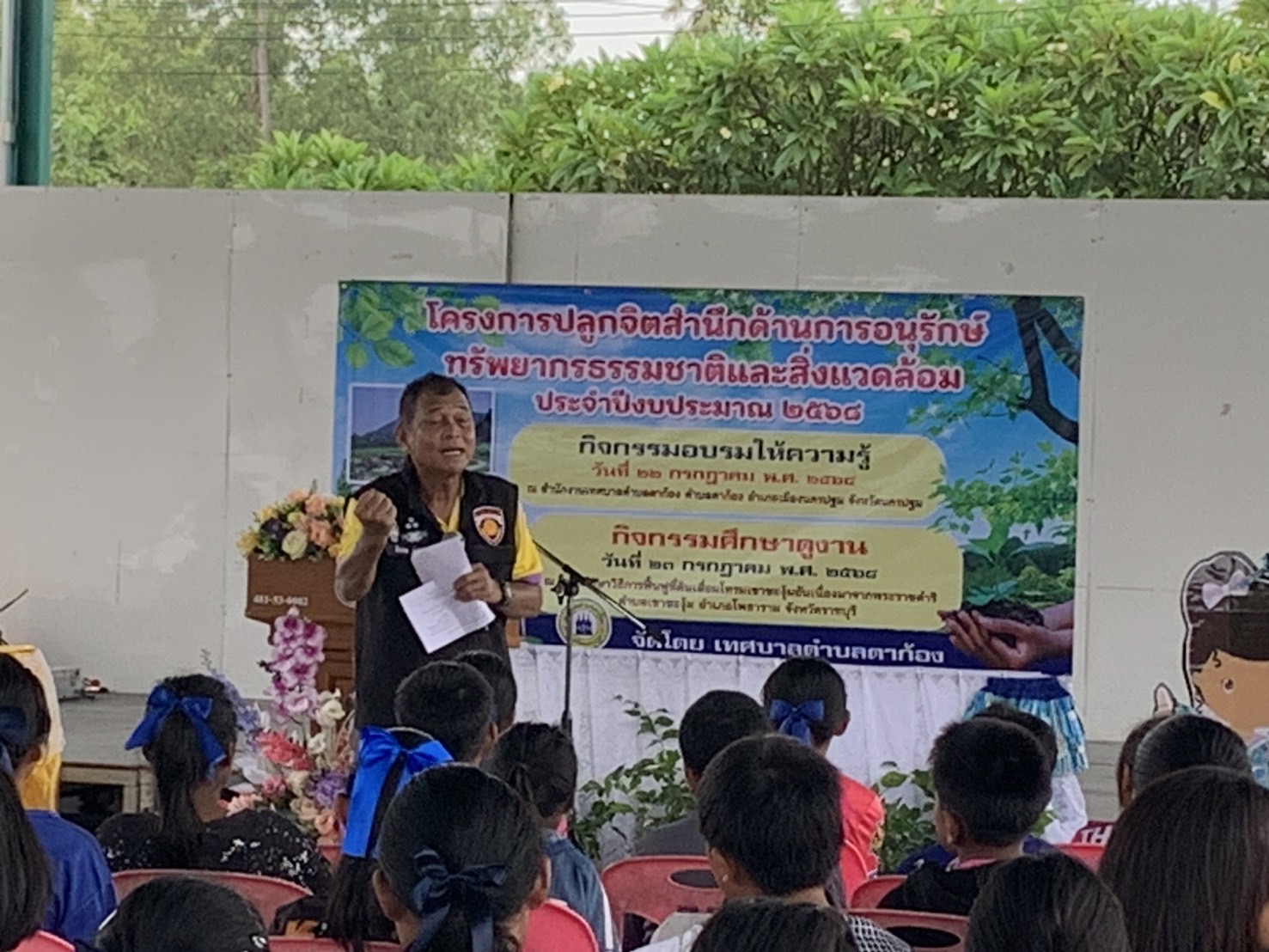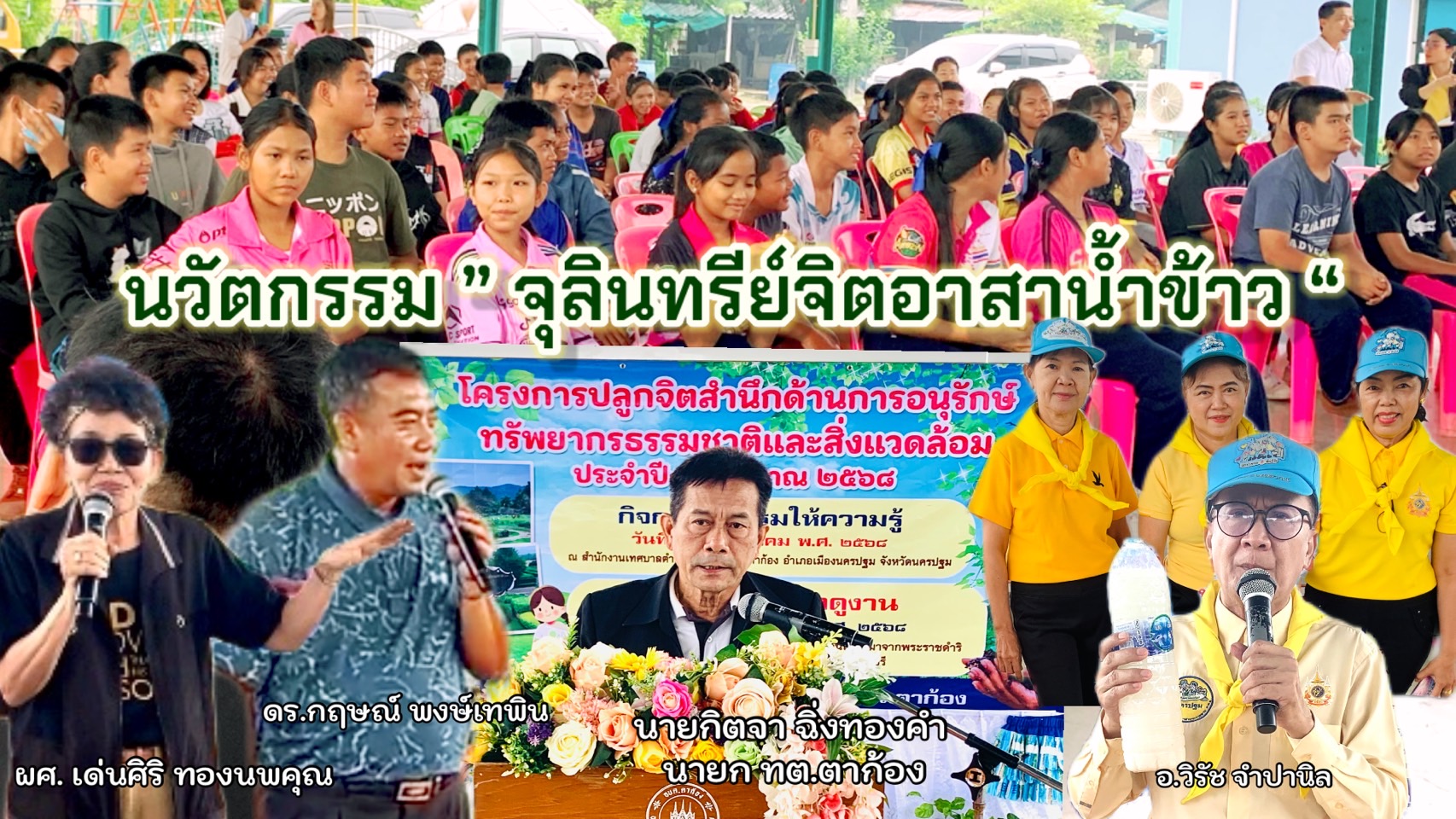 วันที่ 22 กรกฎาคม 2568 นายกิตจา ฉิ่งทองคำ เทศบาลตำบลตาก้อง อ.เมือง จ.นครปฐม ให้ความสำคัญต่อเรื่องทรัพยากรธรรมชาติและสิ่งแวดล้อม ฯ จัดอบรมปลูกจิตสำนึกให้เยาวชน ฯ โดยมีทีมวิทยากรที่นำยุทธศาสตร์ “เมืองจุลินทรีย์” และ นวัตกรรม “จุลินทรีย์จิตอาสาน้ำข้าว” นำโดย อาจารย์ วิรัช จำปานิล (อ.ลุงอ๊อด ) เครือข่ายจิตอาสาพระราชทาน นครปฐม ผู้พัฒนาจุลินทรีย์น้ำข้าว ผศ.เด่นศรี ทองนพคุณ เลขาธิการชมรมรักษ์ท่าจีน และ ดร.กฤษณ์ พงษ์เทพิน ประธานศูนย์เรียนรู้ และนวัตกรรมสังคม “ เมืองจุลินทรีย์ “ (Bio-city) อดีตอาจารย์มหาวิทยาลัยเทคโนโลยีพระจอมเกล้าเจ้าคุณทหารลาดกระบัง (นักวิชาการอิสระ) และ คณะวิทยากรผู้ช่วยจากจตอาสาพระราชทาน นครปฐม จำนวน 3 คน จัดอบรมให้เชิงปฏิบัติการ สาธิต ปฏิบัติจริง แก่เด็กนักเรียนโรงเรียนตาก้อง จำนวน กว่า 100 คน ณ อาคารเอนกประสงค์ เทศบาลตำบลตาก้อง อ.เมือง จ.นครปฐม