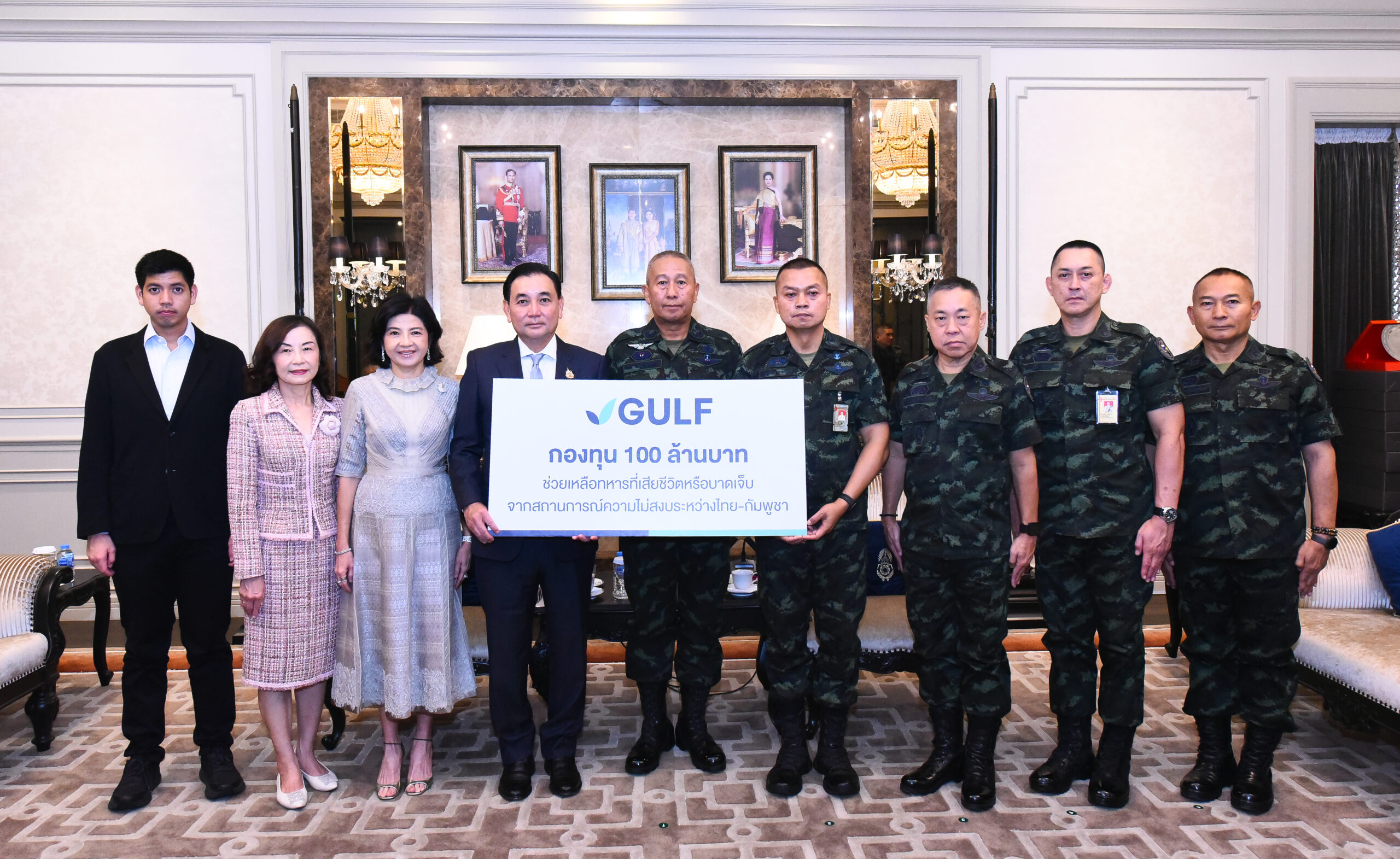 บริษัท กัลฟ์ ดีเวลลอปเมนท์ จำกัด (มหาชน) หรือ GULF ตอกย้ำความมุ่งมั่นในการดูแลสังคม จัดตั้งกองทุนมูลค่า 100 ล้านบาท เพื่อช่วยเหลือและเยียวยาทหารที่ได้รับบาดเจ็บ หรือเสียชีวิตจากการปฏิบัติภารกิจด้านความมั่นคงในพื้นที่ชายแดนไทย-กัมพูชา โดยมีเป้าหมายหลักในการยกระดับคุณภาพชีวิต และมอบขวัญกำลังใจแก่เหล่าทหารและครอบครัวให้สามารถกลับมาใช้ชีวิตได้อย่างเข้มแข็ง