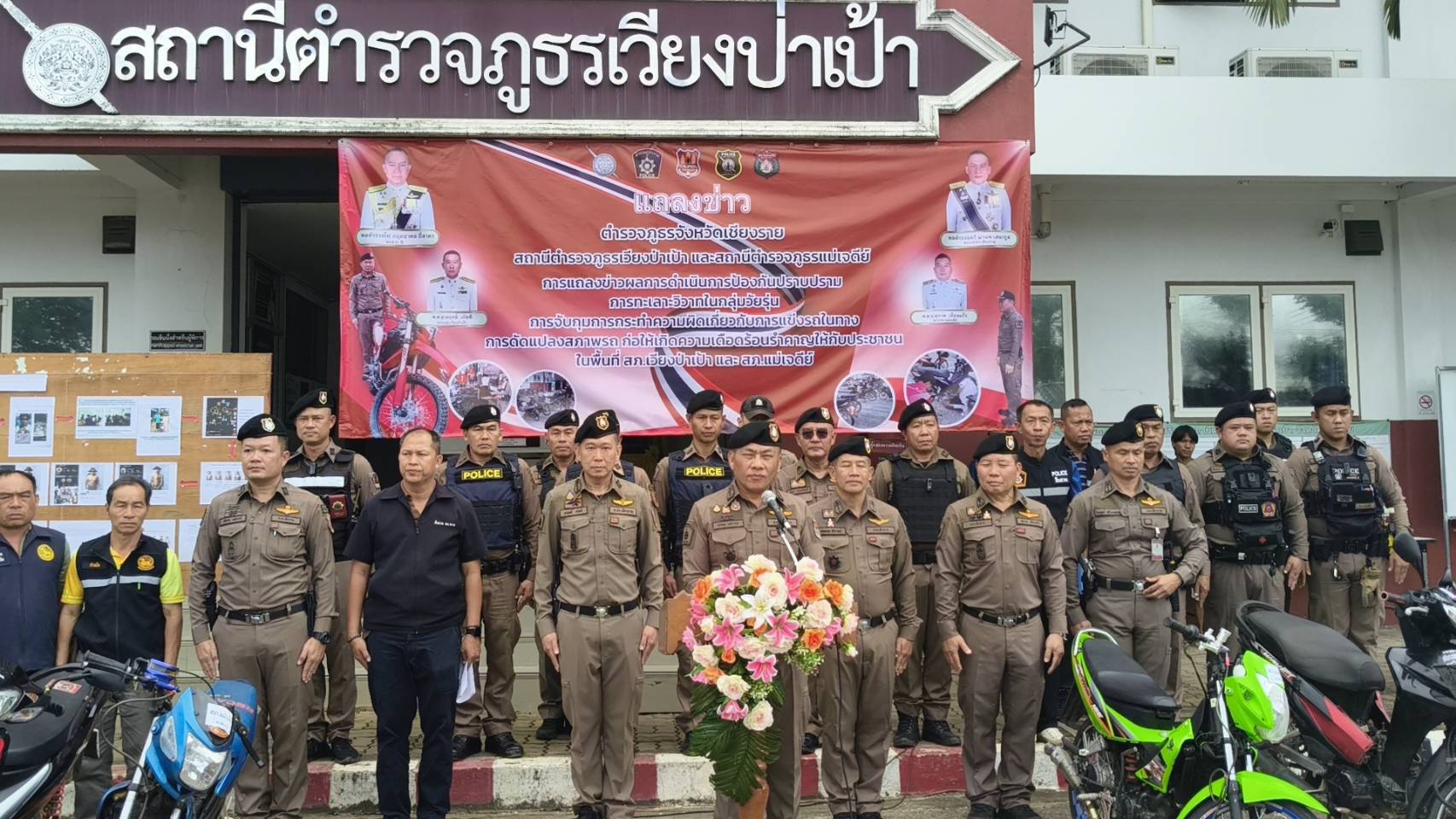 พล.ต.ต.มานพ ผบก.ภ.จว.เชียงราย เผยอีกว่า สาเหตุที่ต้องมีการแถลงข่าวในวันนี้ก็เนื่องมาจาก ทางเจ้าหน้าที่ตำรวจได้รับการร้องเรียนหลายครั้ง ว่าในเขต อ.เวียงป่าเป้า มีกลุ่มวัยรุ่นขับขี่รถจักรยานยนต์ที่รบกวนความสงบสุขของพี่น้องประชาชน และมีความเสี่ยงที่จะเกิดอุบัติเหตุ ทำให้พี่น้องประชาชนรวมไปถึงนักท่องเที่ยวที่ใช้รถใช้ถนนมีความรู้สึกไม่ปลอดภัยในการใช้รถใช้ถนน ทาง สภ.เวียงป่าเป้า และ สภ.แม่เจดีย์ ก็ได้มีการบูรณาการกันลงพื้นที่และตรวจยึดรถที่เข้าข่ายกระทำผิดกฏหมาย ไม่ว่าจะเป็นการดัดแปลงสภาพรถ การใช้ท่อไอเสียเสียงดัง รวมถึงนำตัวผู้ขับขี่มาดำเนินการตามกฏหมาย ในจำนวนผู้ขับขี่ที่ถูกจับกุมในครั้งนี้มีทั้งหมด 14 ราย และในจำนวนนี้มีเยาวชนอายุไม่ถึง 18 ปี จำนวน 2 ราย ซึ่งเจ้าหน้าที่ตำรวจจะต้องมีการดำเนินคดีกับผู้ปกครองตาม พรบ.คุ้มครองเด็ก ซึ่งถือเป็นนโยบายที่ขยายครอบคลุมไปถึงตัวผู้ปกครอง มีการดำเนินคดีกันไปตามกฏหมาย เกี่ยวกับการปล่อยปละละเลยเด็กและเยาวชนที่อยู่ภายใต้การปกครอง แล้วแต่ดุลยพินิจของศาลจะตัดสิน และจากนี้ไปในพื้นที่จังหวัดเชียงรายทั้ง 18 อำเภอ 25 สภ. ถ้าหากมีกรณีแบบนี้เกิดขึ้นอีก นอกจากเราจะดำเนินคดีกับเด็กและรถหรือยานพาหนะต่างๆแล้ว เรายังจะมีการดำเนินคดีกับผู้ปกครองควบคู่กันไปด้วย ไม่มีการตักเตือนอย่างเด็ดขาด เพราะเราได้มีการตักเตือนกันไปเป็นระยะเวลาพอสมควรแล้ว สำหรับที่ อ.เวียงป่าเป้า เป็นพื้นที่ที่ยังไม่ไม่ใช่จุดที่มีปัญหาหนัก เพียงแค่เป็นเขตติดต่อระหว่าง จ.เชียงใหม่ และ จ.เชียงราย จึงจะดำเนินการเป็นอำเภอนำร่อง จากนี้จะขยายการทำงานเข้มงวดในทุกพื้นที่ทุกอำเภอของ จ.เชียงราย ต่อไป จะมีการดำเนินคดีกับผู้เกี่ยวข้องอย่างถึงที่สุดเป็นรายๆไป