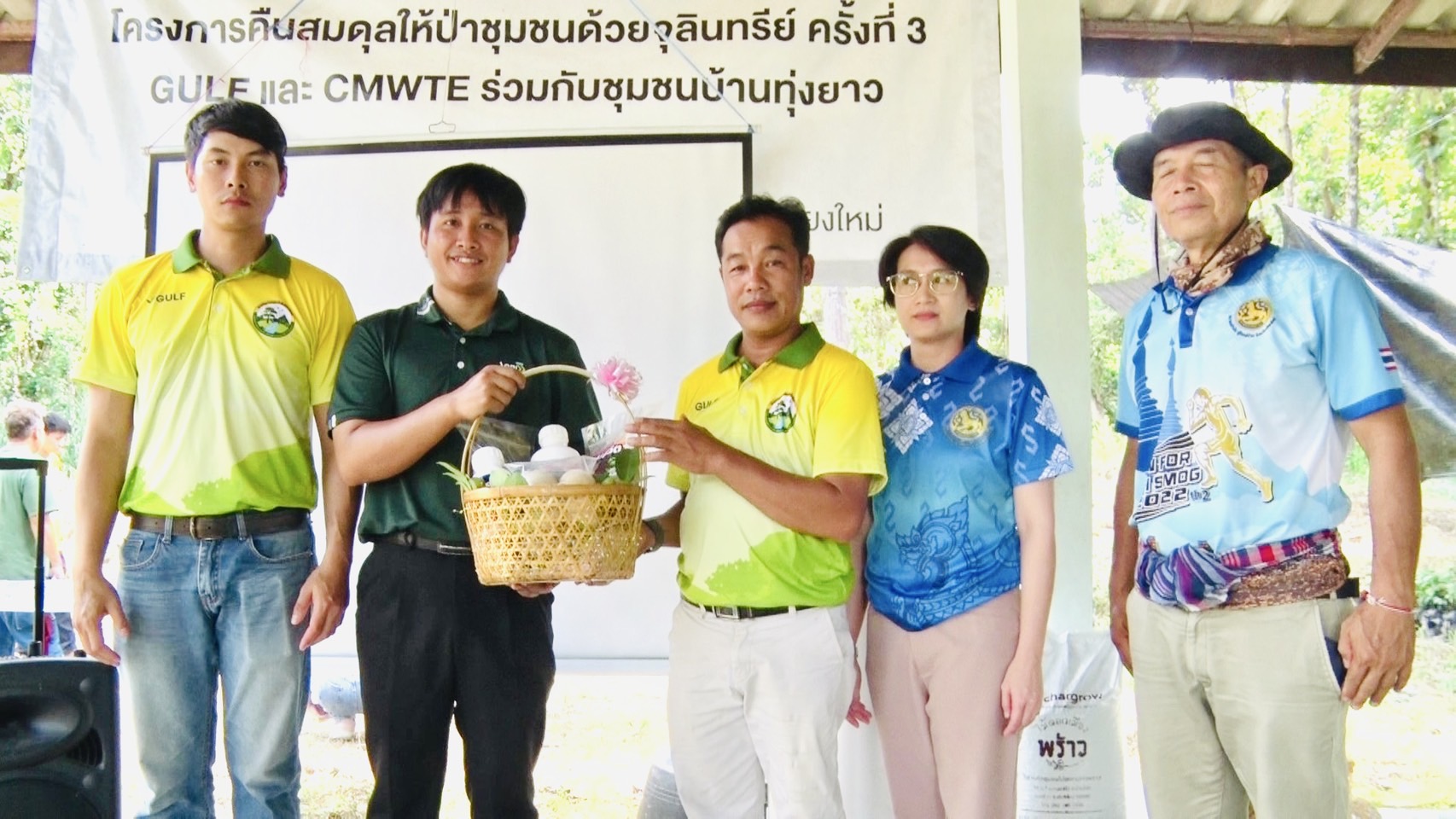 นายสมพงค์ เจริญศิริ กำนันตำบลป่าป้อง อ.ดอยสะเก็ด จ.เชียงใหม่ และ ประธานวิสาหกิจชุมชน อนุรักษ์ป่าต้นน้ำห้วยต้นยาง กล่าวว่า ชุมชนร่วมจัดโครงการ คืนสมดุลให้ป่าชุมชนด้วยจุลินทรีย์“ กับGULF–CMWTE ด้าวสู่ปีที่3 มีการเปลี่ยนแปลงและเสริมประสิทธิภาพการทำงานของเป็นอย่างมาก ทั้งยุทธศาสตร์การอนุรักษ์ป่าชุมชน เพิ่มองค์ความรู้ฐานชีวภาพ วิชาการ การสนับสนุนเครื่องมืออุปกรณ์ งบประมาณ และมีการส่งเสริมต่อเนื่องไม่เพียงแค่ทำกิจกรรมแล้วจบไปจนเกิดระบบกลไกที่เป็นรูปธรรมในวันนี้