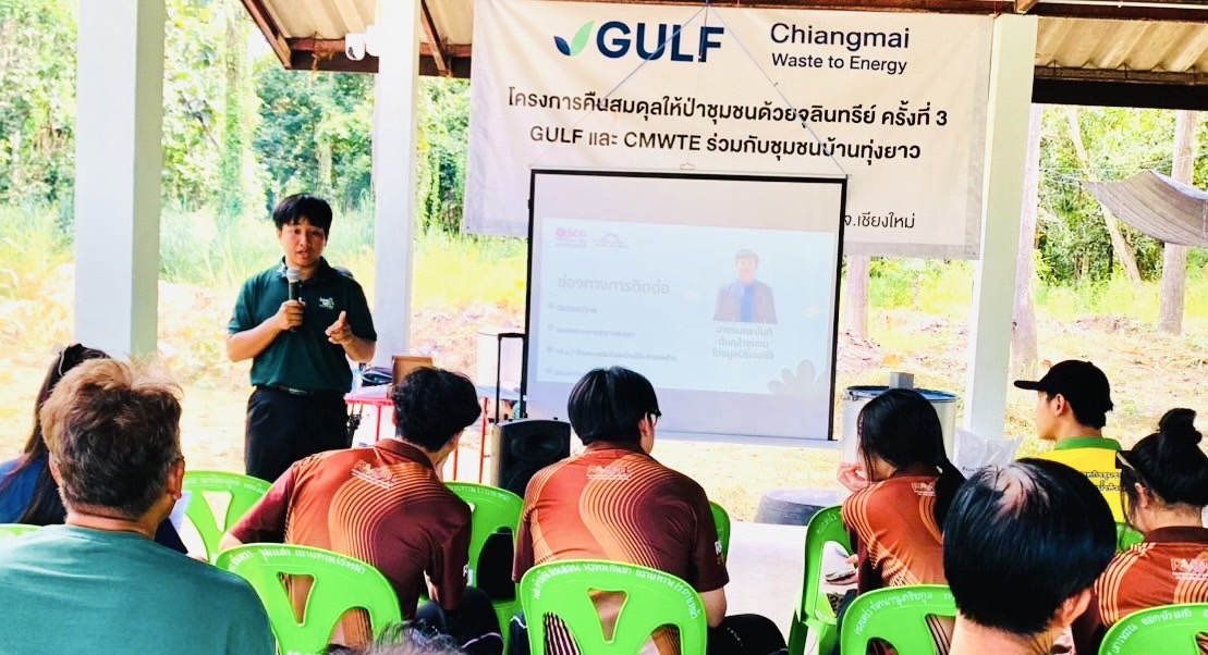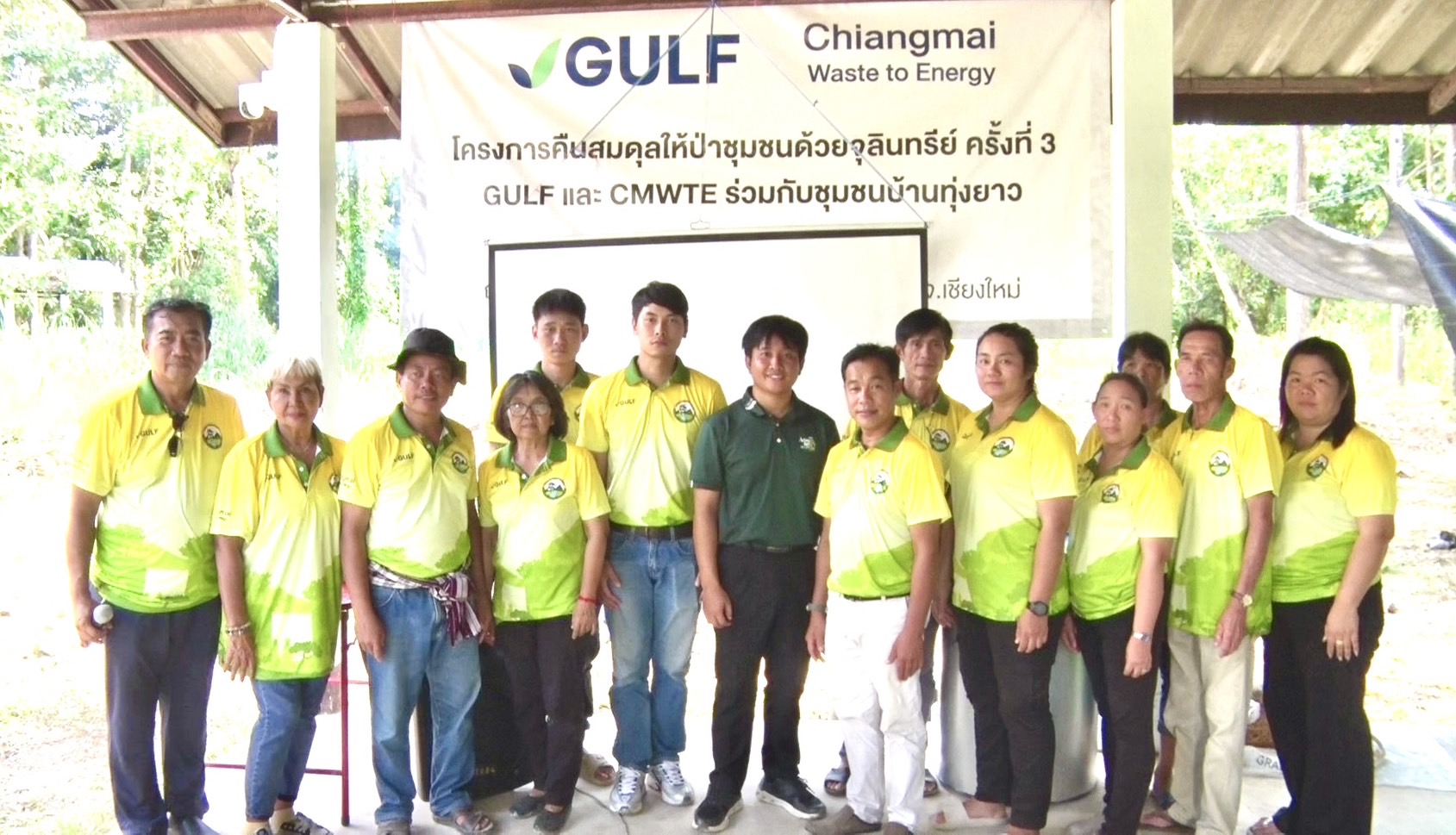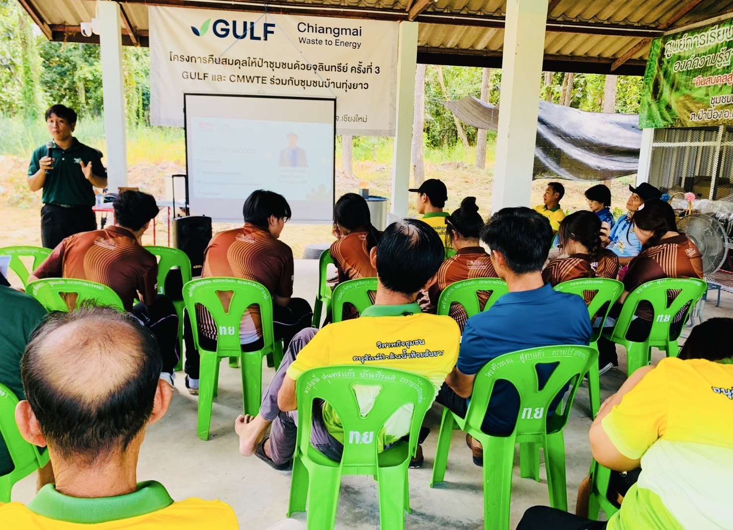 วันที่ 7-8 ตุลาคม 2568 กลุ่มบริษัทกัลฟ์ (GULF) และ บริษัทเชียงใหม่ เวสท์ ทู เอ็นเนอร์จี จำกัด (CMWTE) นำโดย ดร.กฤษณ์ พงษ์เทพิน ผู้ช่วยผู้อำนวยการฝ่ายชุมชนสัมพันธ์ GULF (วิทยากรส่งเสริมโครงการฯ ) ร่วมกับ วิสาหกิจชุมชนอนุรักษ์ป่าต้นน้ำห้วยต้นยาง บ้านทุ่งยาว ม.8 ต.ป่าป้อง อ.ดอยสะเก็ด จ.เชียงใหม่ นำโดย นายสมพงค์ เจริญศิริ กำนันตำบลป่าป้อง อ.ดอยสะเก็ด จ.เชียงใหม่ และประธานวิสาหกิจชุมชนฯ ร่วมกันจัดกิจกรรมต่อเนื่อง ภายใต้โครงการ “ คืนสมดุลให้ป่าชุมชนด้วยจุลินทรีย์ ” ซึ่งส่งเสริมและสนับสนุนจาก GULF–CMWTE ก้าวสู่ปีที่ 3 โดยมีเป้าหมายในการอนุรักษ์ป่าต้นน้ำห้วยต้นยาง ซึ่งมีพื้นที่ 2,307 ไร่ โดยที่ผ่านมาได้ดำเนินงานก้าวหน้าหลายด้าน ได้แก่ การอบรมความรู้ด้านนวัตกรรมจุลินทรีย์ฐานชีวภาพ การจัดตั้งศูนย์เรียนรู้และธนาคารจุลินทรีย์ชุมชน การผลิตสินค้าจากจุลินทรีย์เพื่อรักษาสิ่งแวดล้อม และการเกษตร เพื่อเสริมสร้างรายได้แก่ชุมชน อาทิ เช่น ปุ๋ยหมัก ปุ๋ยน้ำชีวภาพ (อาหารพืช) จุลินทรีย์บำบัดน้ำเสีย และ การเกษตรต่างๆ การอบรมและศึกษาดูงาน การฟื้นฟูป่า ด้วย “ไมคอร์ไรซ่า” การปลูกป่าเพิ่มพื้นที่สีเขียว การทำฝายชะลอน้ำ และ แปลงทดลองป่าไม้เศรษฐกิจด้วยเห็ดไมคอร์ไรซ่า ส่งเสริมครัวเรือนพึ่งตนเอง และปลูกป่าครัวเรือน ฯลฯ ปีที่ผ่านมา ได้ส่งเสริมการรวมกลุ่มจดทะเบียนเป็น “วิสาหกิจชุมชนอนุรักษ์ป่าต้นน้ำห้วยต้นยาง “ กับ สำนักงานเกษตรอำเภอดอยสะเก็ด จ.เชียงใหม่ เพื่อยกระดับการจัดการสร้างกลไกในการบริหารจัดการที่มีประสิทธิภาพและขับเคลื่อนงานอนุรักษ์ป่าชุมชนอย่างป็นระบบมากยิ่งขึ้น ตามหลักการพัฒนาที่ยั่งยืน (Sustainable) โดยกำหนดยุทธศาสตร์เชื่อมโยง 3 องค์ประกอบหลัก คือ ทรัพยากรธรรมชาติและสิ่งแวดล้อม เศรษฐกิจและสังคม ควบคู่กัน รวมถึงการใช้ทรัพยากรป่าไม้ในท้องถิ่น เช่น ใบไม้ เศษไม้ ในป่าซึ่งเป็นเชื้อเพลิงไฟป่าและการย่อยสลายตามธรรมชาติและไฟป่าก่อเกิดคาร์บอนไดออกไซด์ และอื่นๆซึ่งเป็นมลภาวะในอากาศ (ภาวะโลกร้อน) และ เศษวัสดุทางการเกษตรและครัวเรือน นำกลับมาใช้ประโยชน์ในการลดรายจ่ายสร้างผลิตภัณฑ์สร้างรายได้หรือมูลค่าเพิ่มเชิงเศรษฐกิจ และการจัดสรรค์เพื่อเชื่อมโยงพัฒนาสังคมและสิ่งแวดล้อมอย่างยั่งยืน เป็นต้น